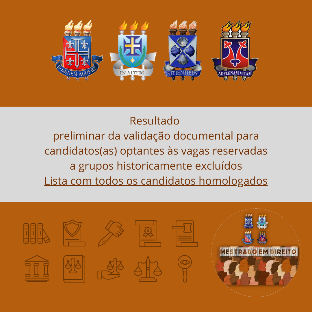 Resultado com a lista de todos os candidatos homologados que se inscreveram para as vagas destinadas a grupos historicamente excluídos na seleção 2025 do PPGD/ UEFS/ UESB/ UESC/ UNEB.