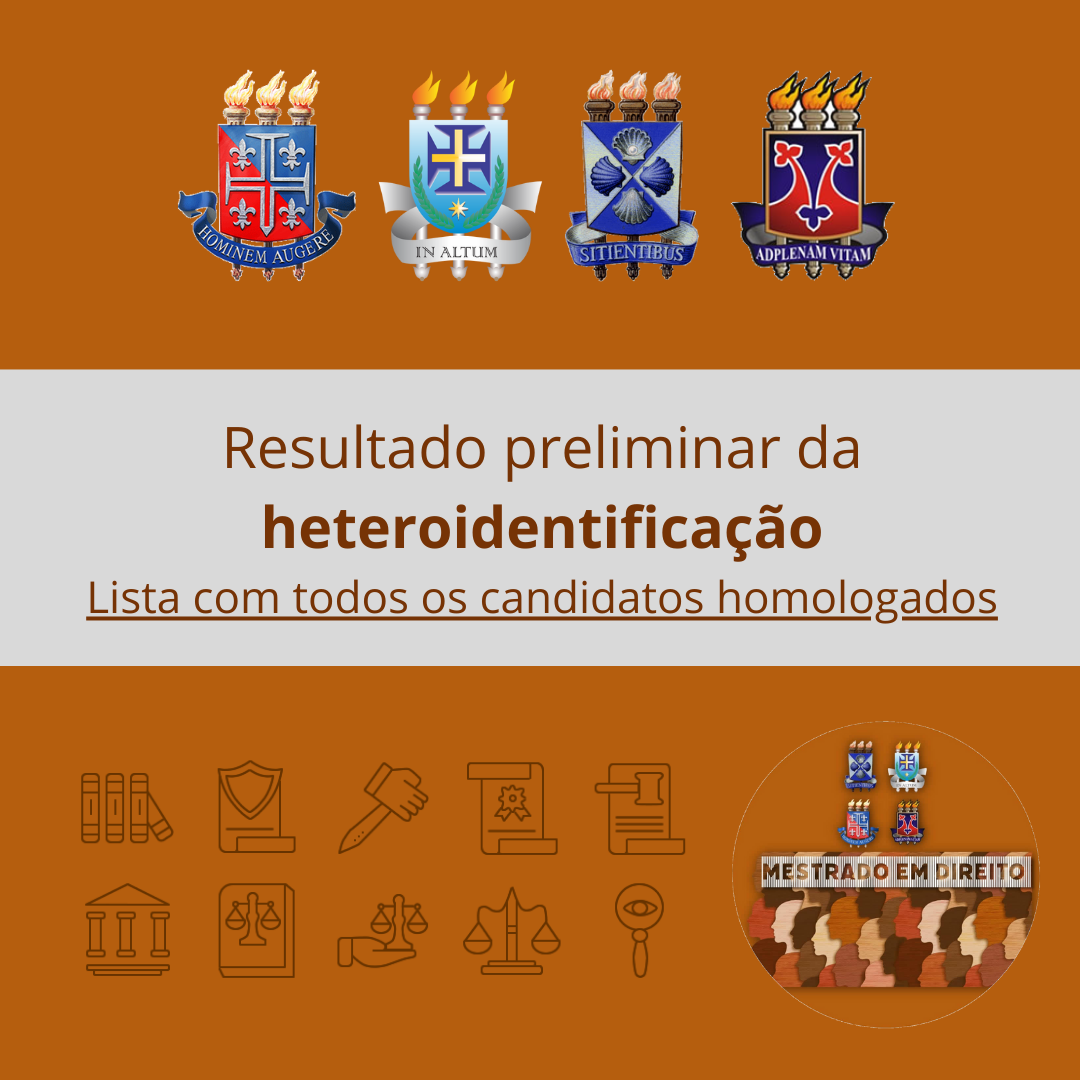 Resultado Heteroidentificação com a lista de todos os candidatos homologados que se inscreveram para as vagas de cotistas destinadas a pessoas negras na seleção 2025 do PPGD/ UEFS/ UESB/ UESC/ UNEB.